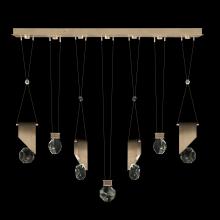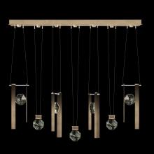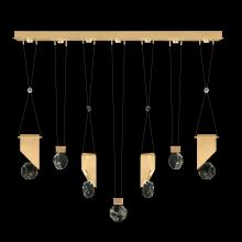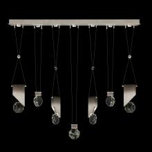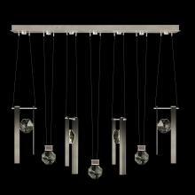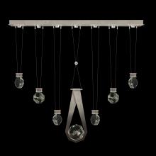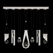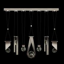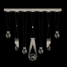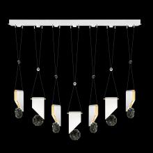 Seven-drop linear pendant inspired by the sophistication and versatility of necklace charms. This collection empowers you to curate your unique piece with its five exquisite finishes and four distinct charm designs meticulously crafted using opulent faceted optic crystal. Each charm shines like a gem, captivating attention. Whether you desire the delicate dance of light reflecting off the crystal or the functional illumination from above, Aria's integrated LED lights bring your vision to life.