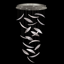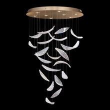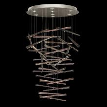 Elevate raises your environment to new heights. Each Crystal Stardust glass spire is hand sculpted with translucent clear crystal and surrounded in a clear crystal casing. Illuminated from a silver leaf canopy and suspended by adjustable cables, this Made in America round fixture features 23 sculpted spires and is ideal for high ceilings.