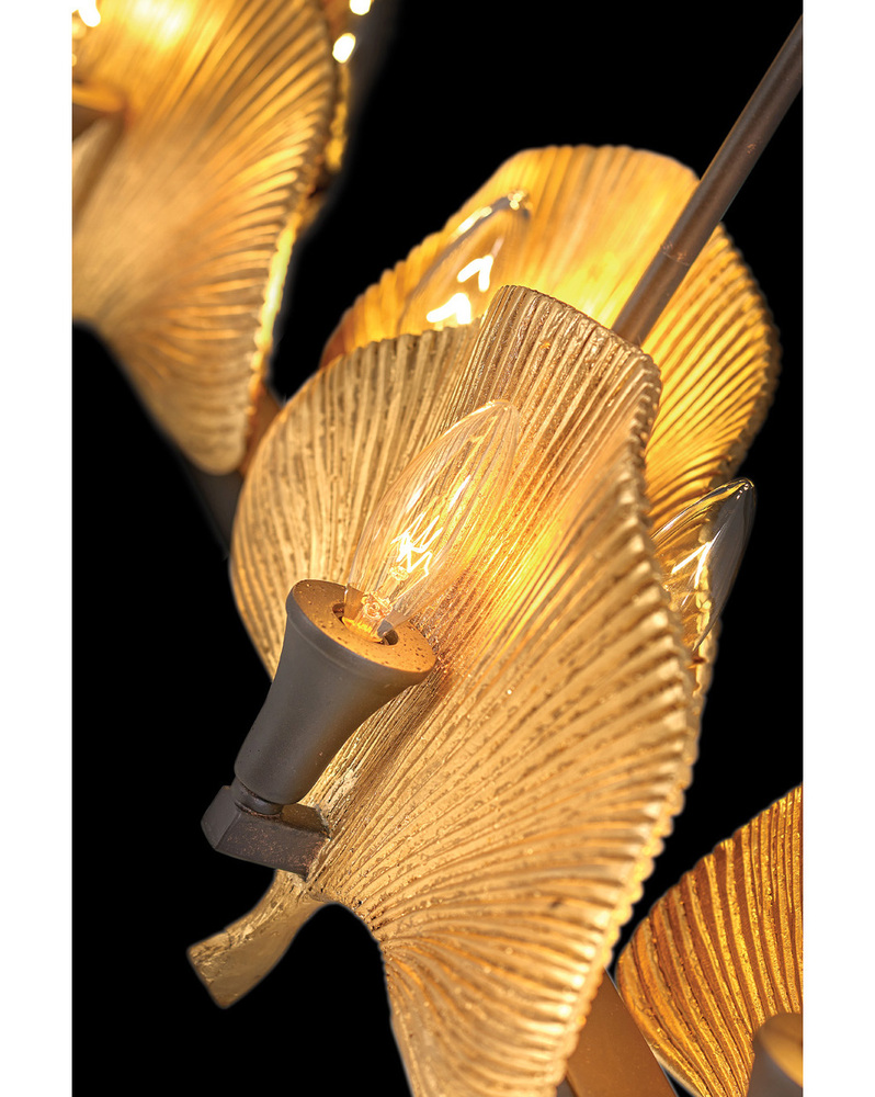 Paying homage to the ornamental Ginkgo tree, Cera’s intricate cast leaves help awaken an elegant decor, while its Bronze finish against Cleopatra Gold blossoms chic allure throughout a space.