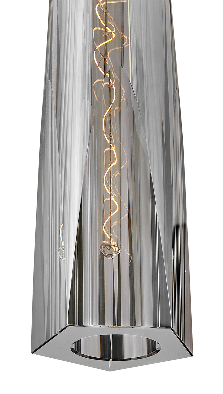 With a dramatic but sleek silhouette and elongated crystal-cut sconce shades, Cosette exudes opulent charm. With two luxurious heavy-cut crystal shade options, smokey gray or clear, both beautifully cast a rich, multi-faceted light pattern. Cosette's sconce includes an elegantly concealed on/off switch, making it perfect for bedsides and intimate spaces pattern.