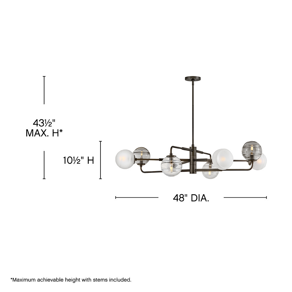 This fixture includes multiple down stems in various lengths to customize the installation height of the fixture, including one 6" stem and two 12" stems