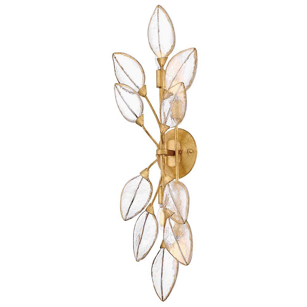 Romantic and elegant, Amira’s floral and vine-inspired design features clear pressed glass leaves hand-painted with delicate gold detailing. A refined Distressed Brass frame evokes a timeless charm.