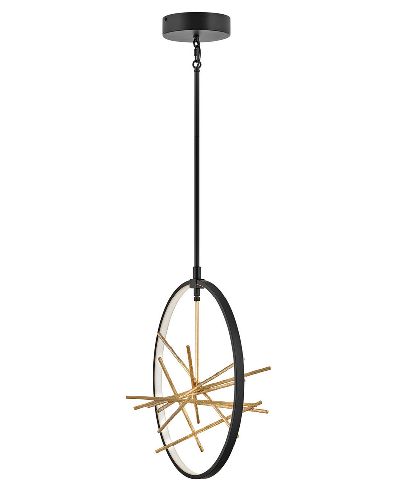 The breathtaking design of Styx fuses rich glamour with modern styling for an enthralling and dynamic silhouette with unexpected elements. An integrated LED open frame is fully dimmable, composed of clean angles in a chic Black finish. The frame illuminates textured metal branches in Gilded Gold, mingling organic and contemporary elements.