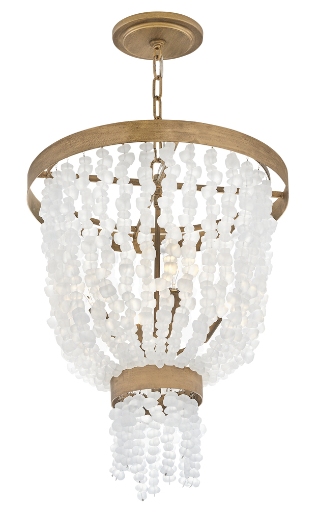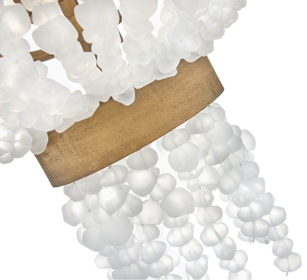Dune's bohemian chic design showcases strands of soft sea glass combined with a Burnished Gold finish. The designs blend a sophisticated silhouette with organic elements inspired by sun and surf. Dune infuses any space with timeless, mesmerizing elegance.