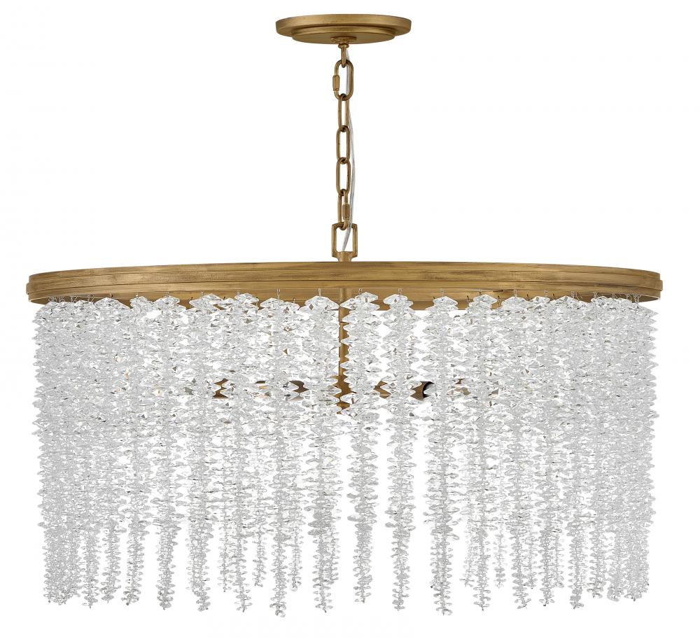 Dripping with glamour, Rubina’s magnificent shade is crafted from individually hung strands of sparkling crystal. A traditional tiered frame accentuates every beautiful refraction with its Burnished Gold finish.