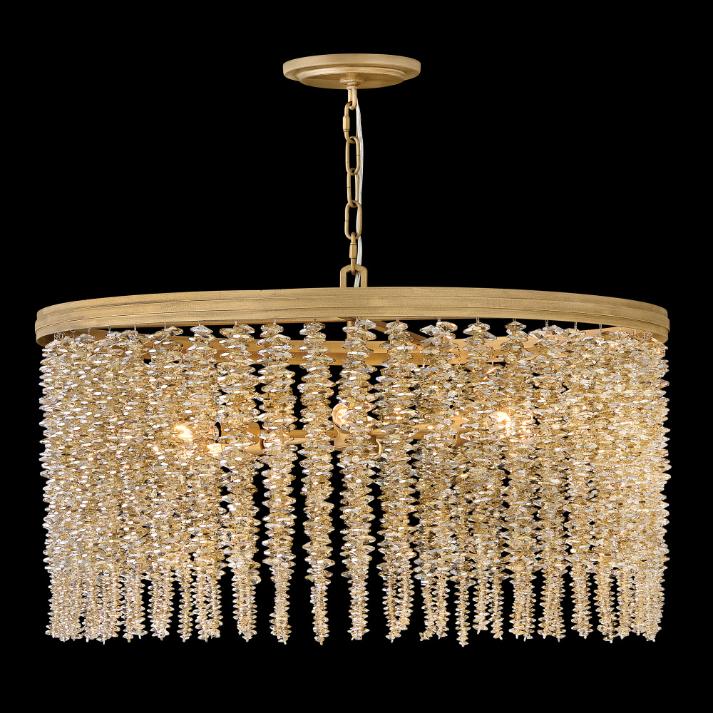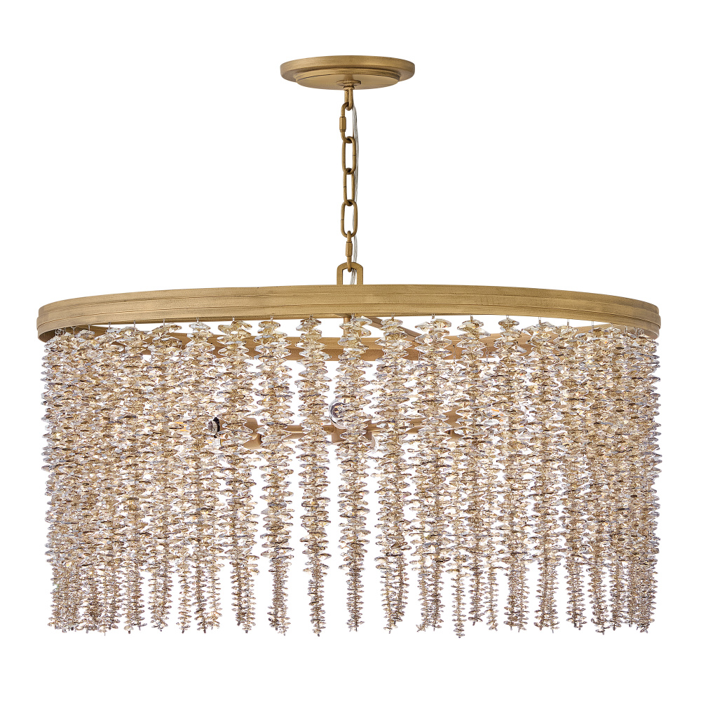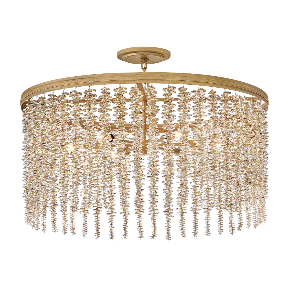 Dripping with glamour, Rubina’s magnificent shade is crafted from individually strung strands of sparkling crystal. A traditional tiered frame accentuates every beautiful refraction with its Burnished Gold finish.