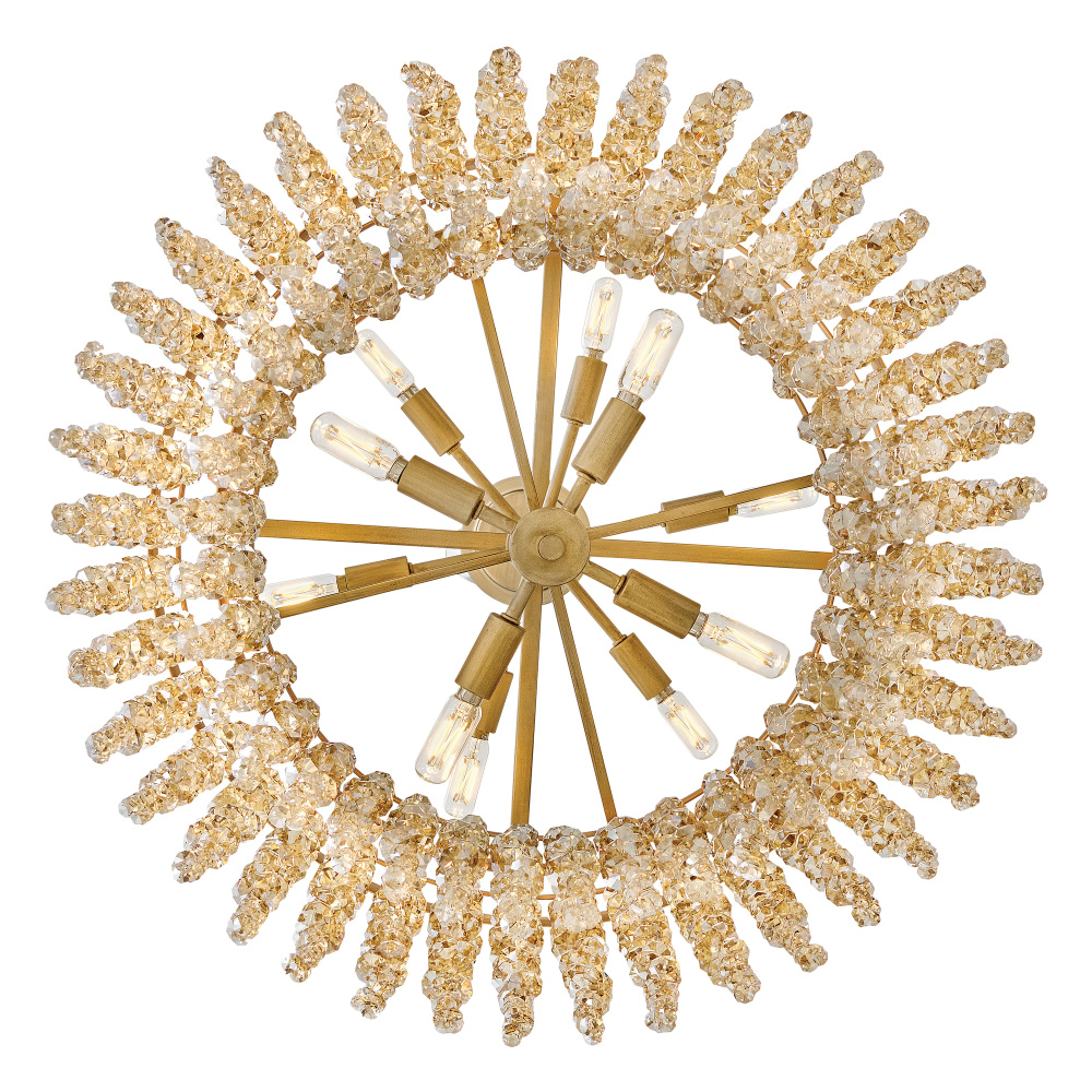 Dripping with glamour, Rubina’s magnificent shade is crafted from individually strung strands of sparkling crystal. A traditional tiered frame accentuates every beautiful refraction with its Burnished Gold finish.