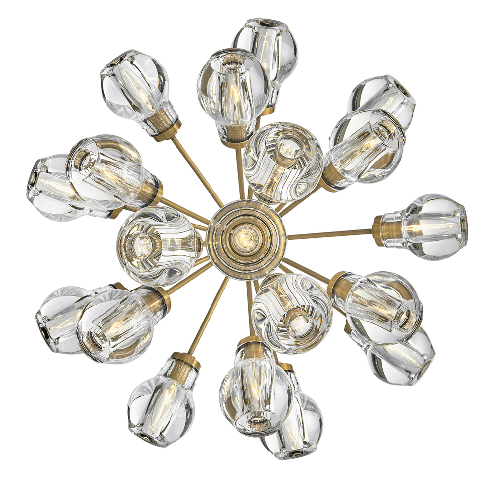 Elise infuses spaces with mesmerizing elegance. Light dramatically refracts from jaw-dropping, rounded, thick-cut crystal shades arranged in an enticing cluster formation. The robust arms, offered in either rich Black or Heritage Brass finishes, extend outward in a beautiful radiating pattern.