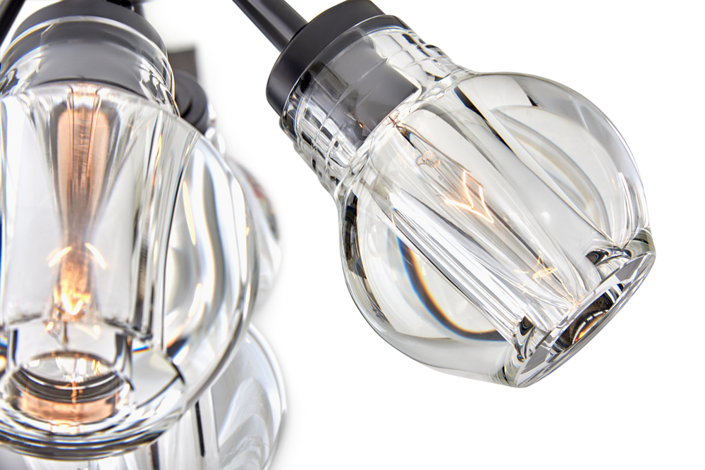 Elise infuses spaces with mesmerizing elegance. Light dramatically refracts from jaw-dropping, rounded, thick-cut crystal shades arranged in an enticing cluster formation. The robust arms, offered in either rich Black or Heritage Brass finishes, extend outward in a beautiful radiating pattern.