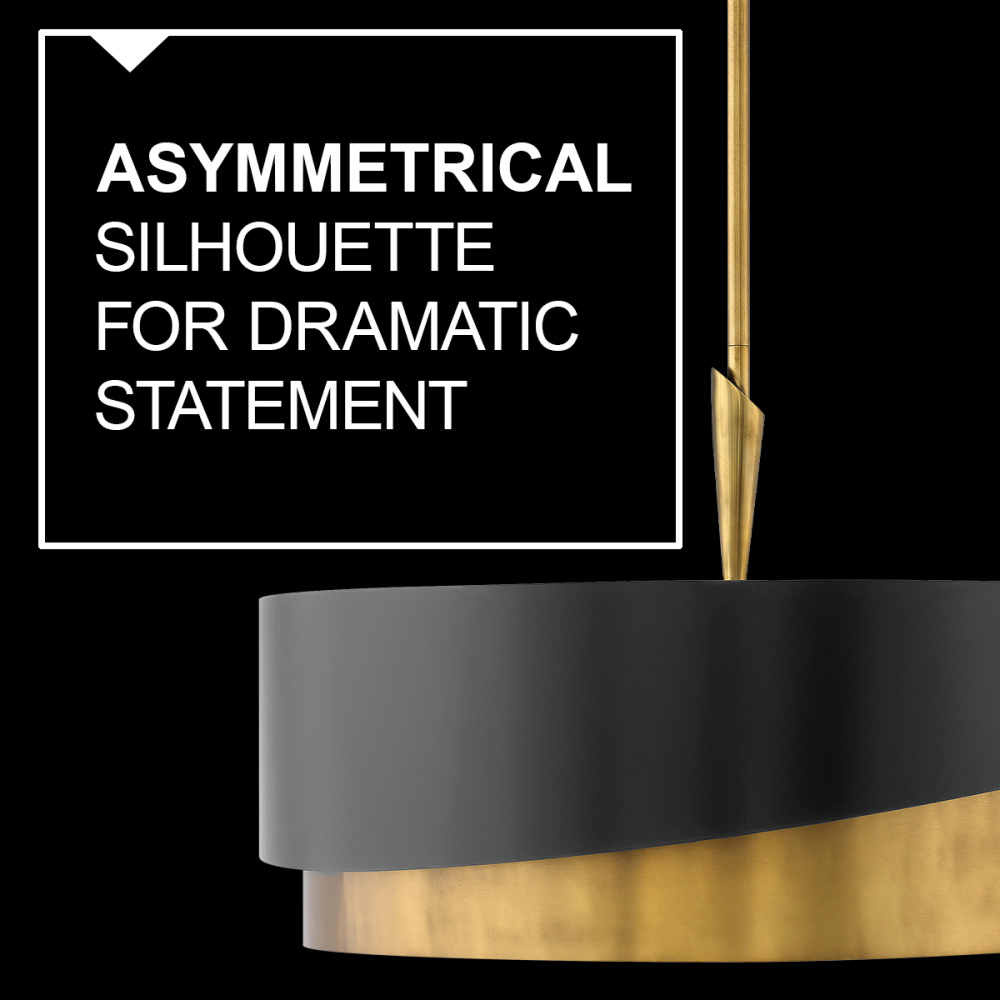 GIGI's asymmetrical silhouette creates a dramatic statement. The collection's sleek lines impart both glamour and sophistication while the stylish two-tone Heritage Brass and Satin Black finish combination delivers the ultimate in chic.