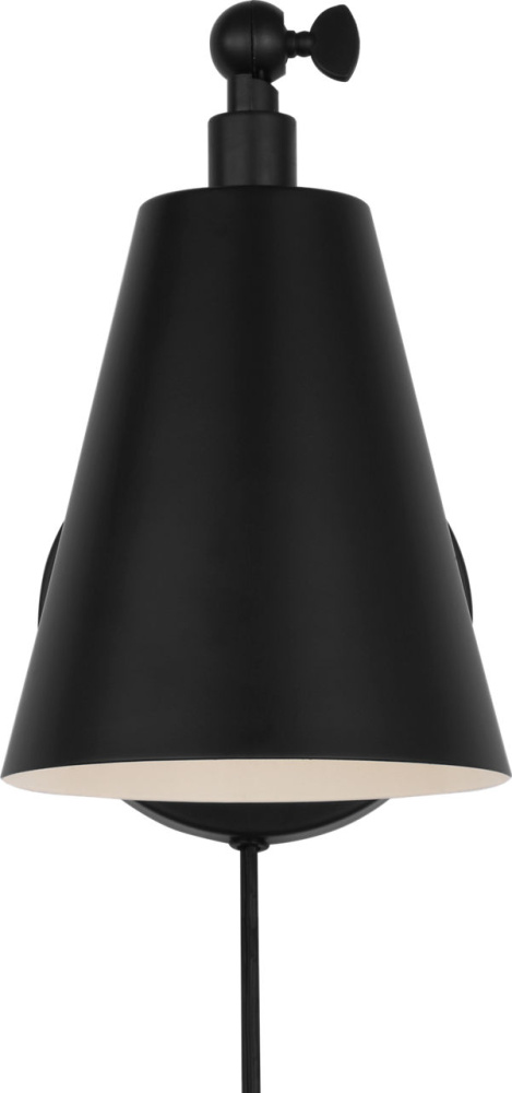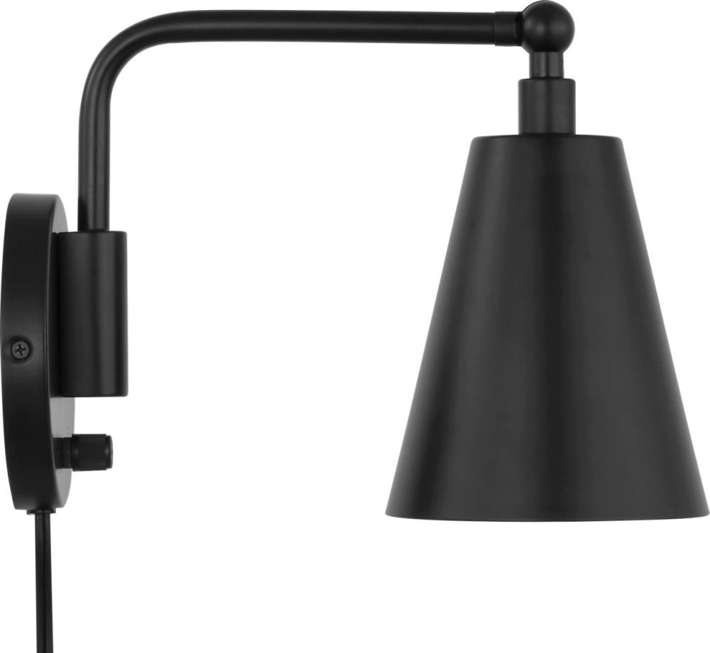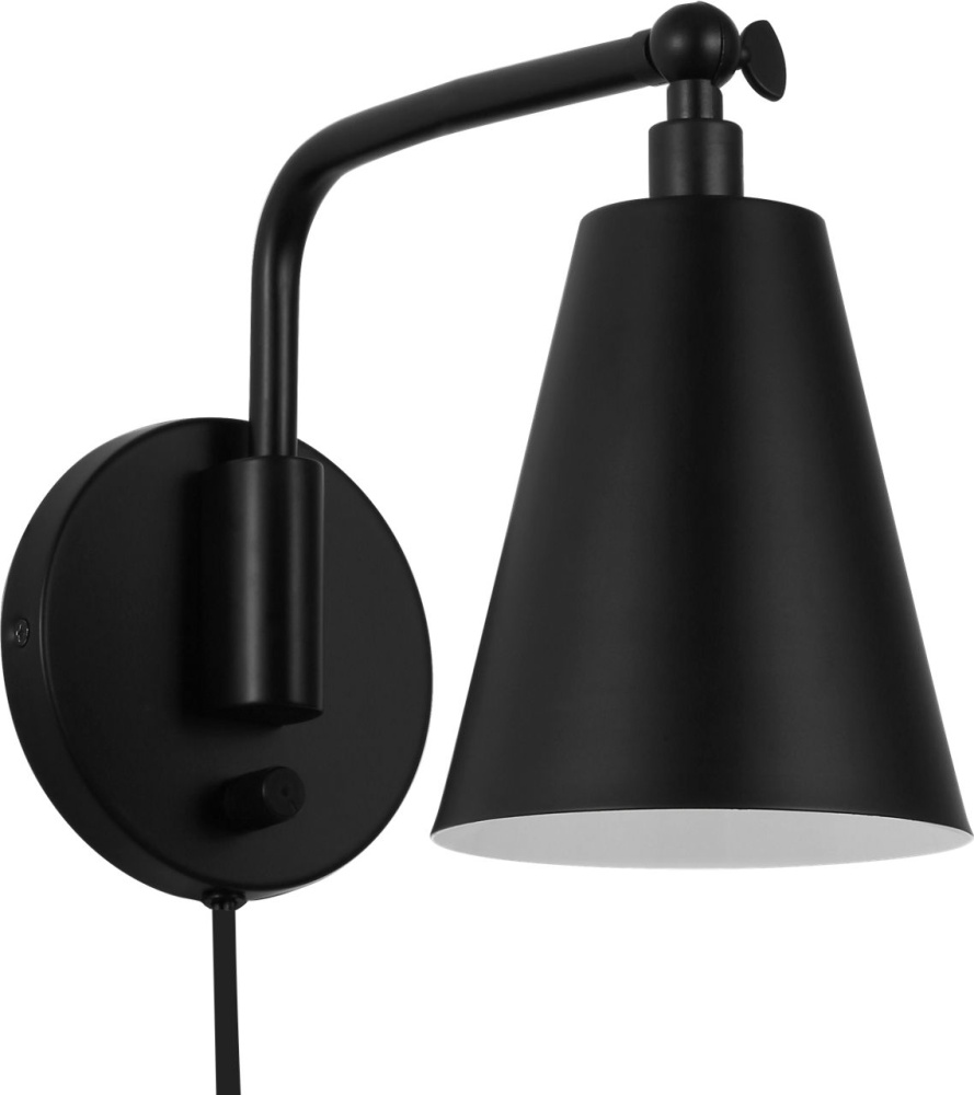 The transitional Drae Task Sconce is designed for flexibility and ease of use. The adjustable arm and metal shade allow for precise light direction, while a turn-knob on the backplate provides simple on/off control. A plug-in cord offers installation versatility, making it a practical solution for bedrooms, home offices, or reading corners.
