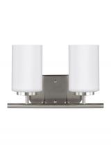 The Oslo two light vanity fixture in midnight black provides abundant light for your bath vanity, while adding a layer of today's style to your interior design. The Oslo lighting collection by is a sleek design, with smooth and clean lines. The Opal Etched glass adds to this collection's contemporary and minimalist character. Offered in Chrome, Brushed Nickel, Burnt Sienna and textured Blacksmith finishes, the collection includes nine-, five-, and three-light chandeliers, pendants in four sizes, both flush and semi-flush ceiling fixtures, as well as one-, two-, three- and four-light wall/bath fixtures. Both incandescent lamping and ENERGY STAR-qualified LED lamping are available. All fixtures are California Title 24 compliant.