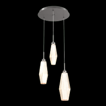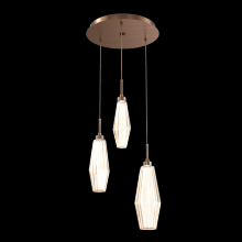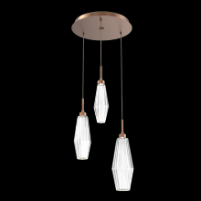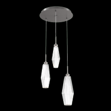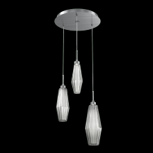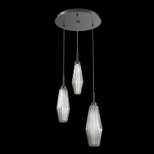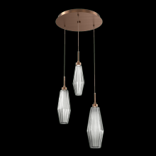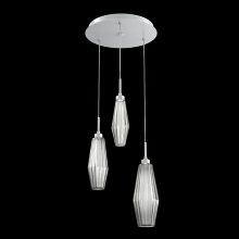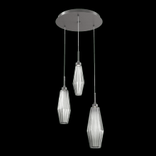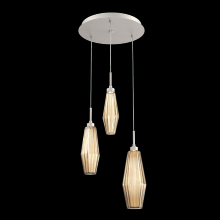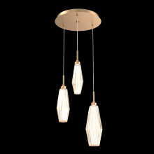 Aalto Round Multi - Port - Gilded Brass - Optic Rib Blown Glass - Clear - Cloth Braided Cord - LED - 2700K