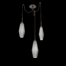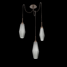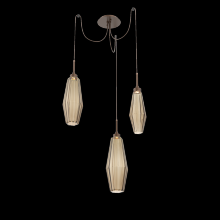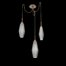 Aalto Round 3pc Swag Multi - Pendant - Novel Brass - Optic Rib Blown Glass - Clear - Cloth Braided Cord - LED - 3000K