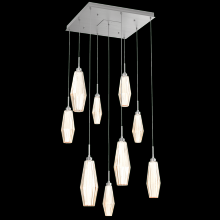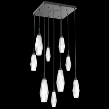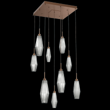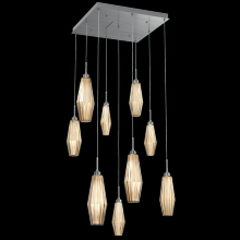 Aalto Square Multi - Port - Matte Black - Optic Rib Blown Glass - Amber - Cloth Braided Cord - LED - 2700K