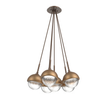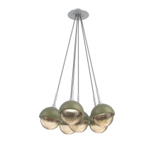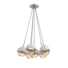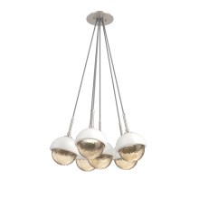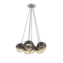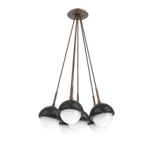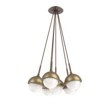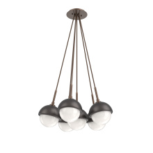Capturing the visual intrigue of this time-honored gemstone style, the Cabochon Cluster Pendant is a sculptural fusion of artisan blown crystal glass and polished stone or metalwork in a colorful selection of single and two-tone finishes. This captivating blend of tradition and modernity elevates transitional and modern spaces alike.