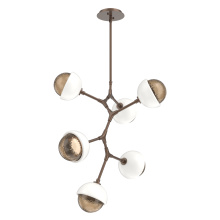 The Cabochon Modern Vine Chandelier elevates a modern organic interpretation of the natural world with the sculptural fusion of artisan blown crystal glass and polished stone or metalwork in a colorful selection of single and two-tone finishes.