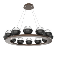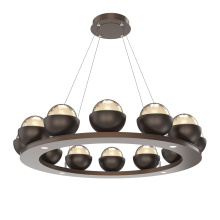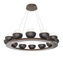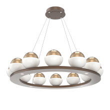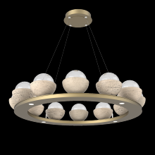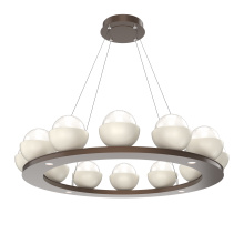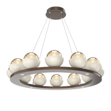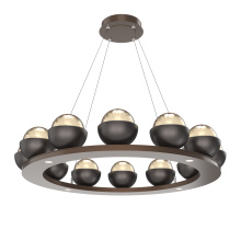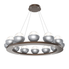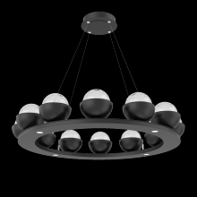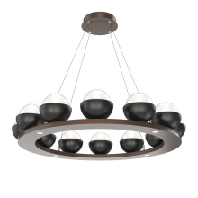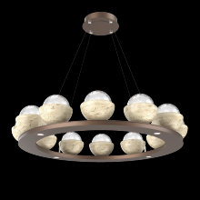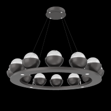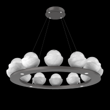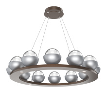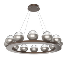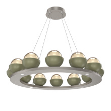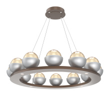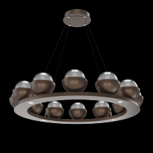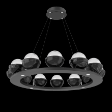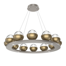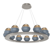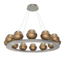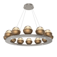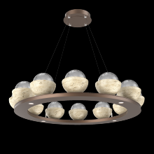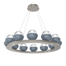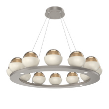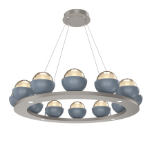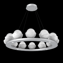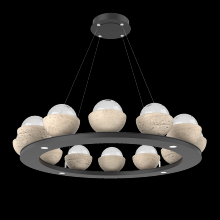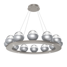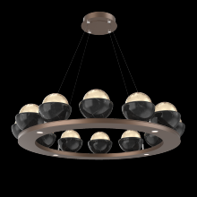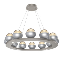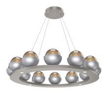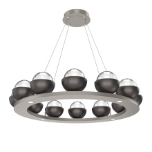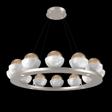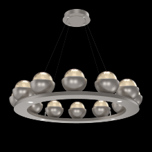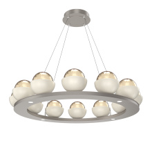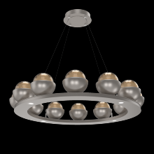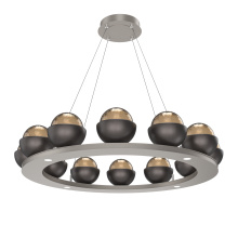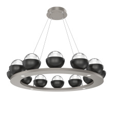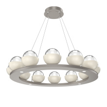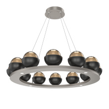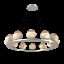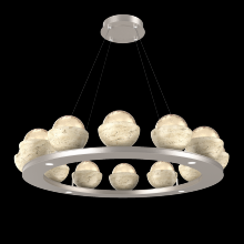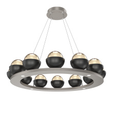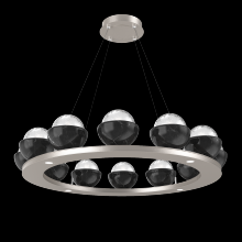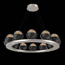 Cabochon 36" Platform Ring-Beige Silver-Clear Glass with Black Marble-Stainless Cable-LED 3000K