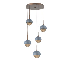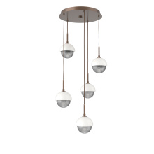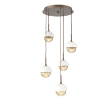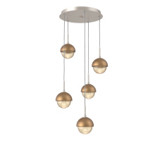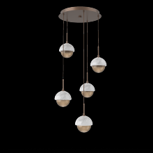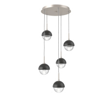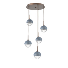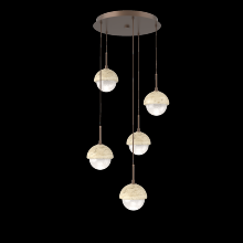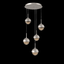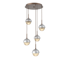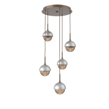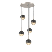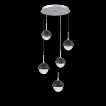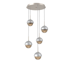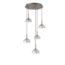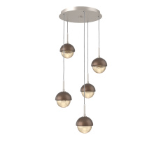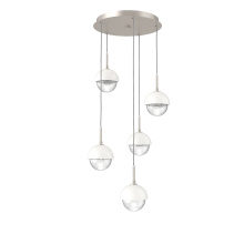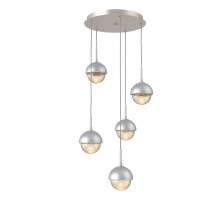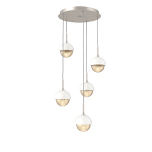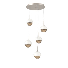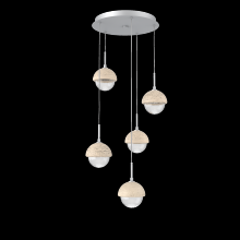 Cabochon 5pc Multi-Pendant-Beige Silver-Clear Glass with White Marble-Cloth Braided Cord-LED 3000K