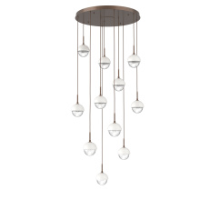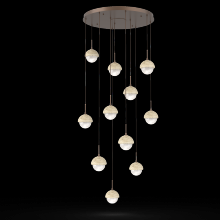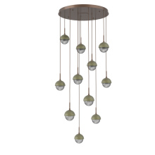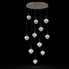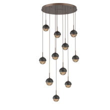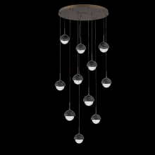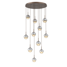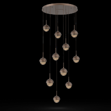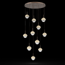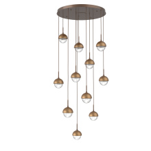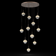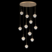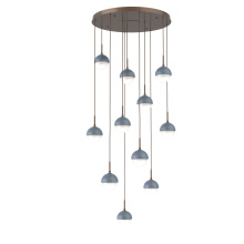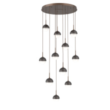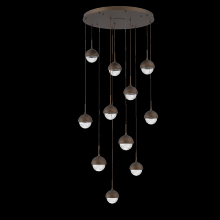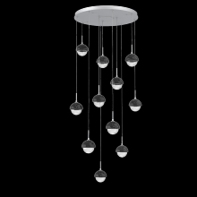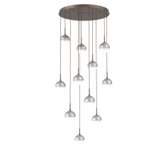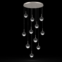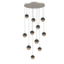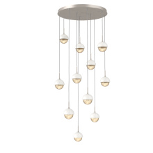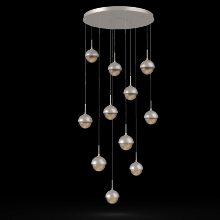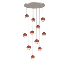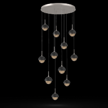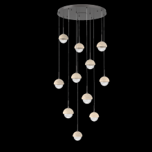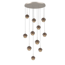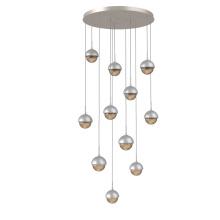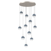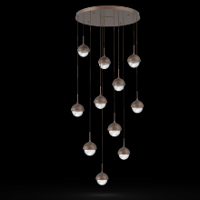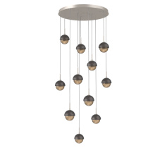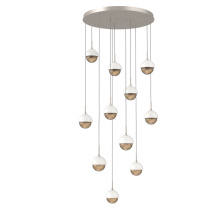 Cabochon 11pc Multi-Pendant-Beige Silver-Clear Glass with Metal Shade-Cloth Braided Cord-LED 2700K