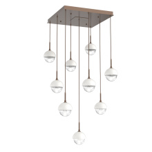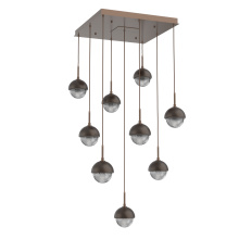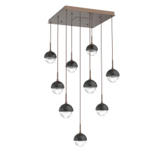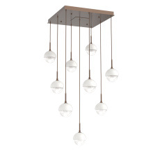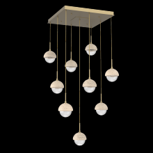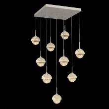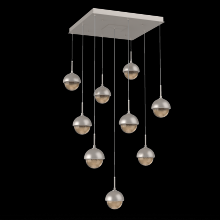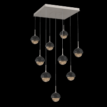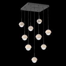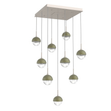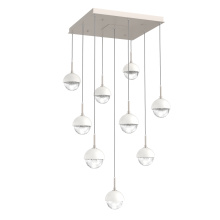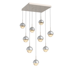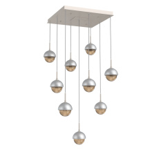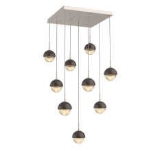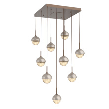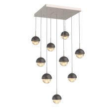 Cabochon 9pc Multi-Pendant-Beige Silver-Clear Glass with Travertine-Cloth Braided Cord-LED 3000K