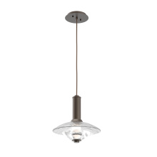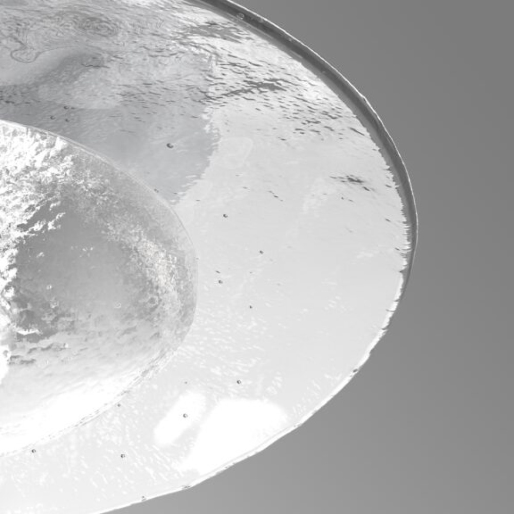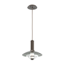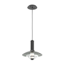 A unique fusion of textured kiln-fused glass, cast crystal glass and precision-crafted metal lends surprising drama to this modern pendant style. Available in a choice of Smoke Granite or Clear Granite textured glass and several finishes.