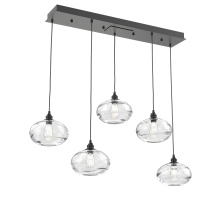 Coppa Linear Multi - Pendant - Matte Black - Amber Optic Blown Glass - Cloth Braided Cord - Incandescent E26 Socket