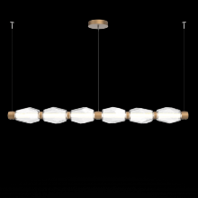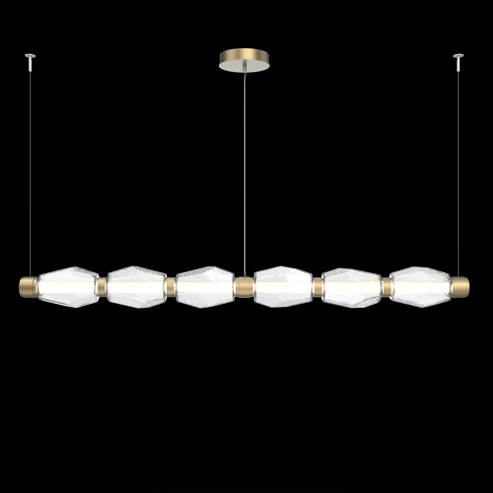Gem Mandrel 74 - Inch Linear - Gilded Brass - Clear Blown Glass - Stainless Cable - LED - 3000K