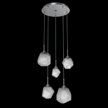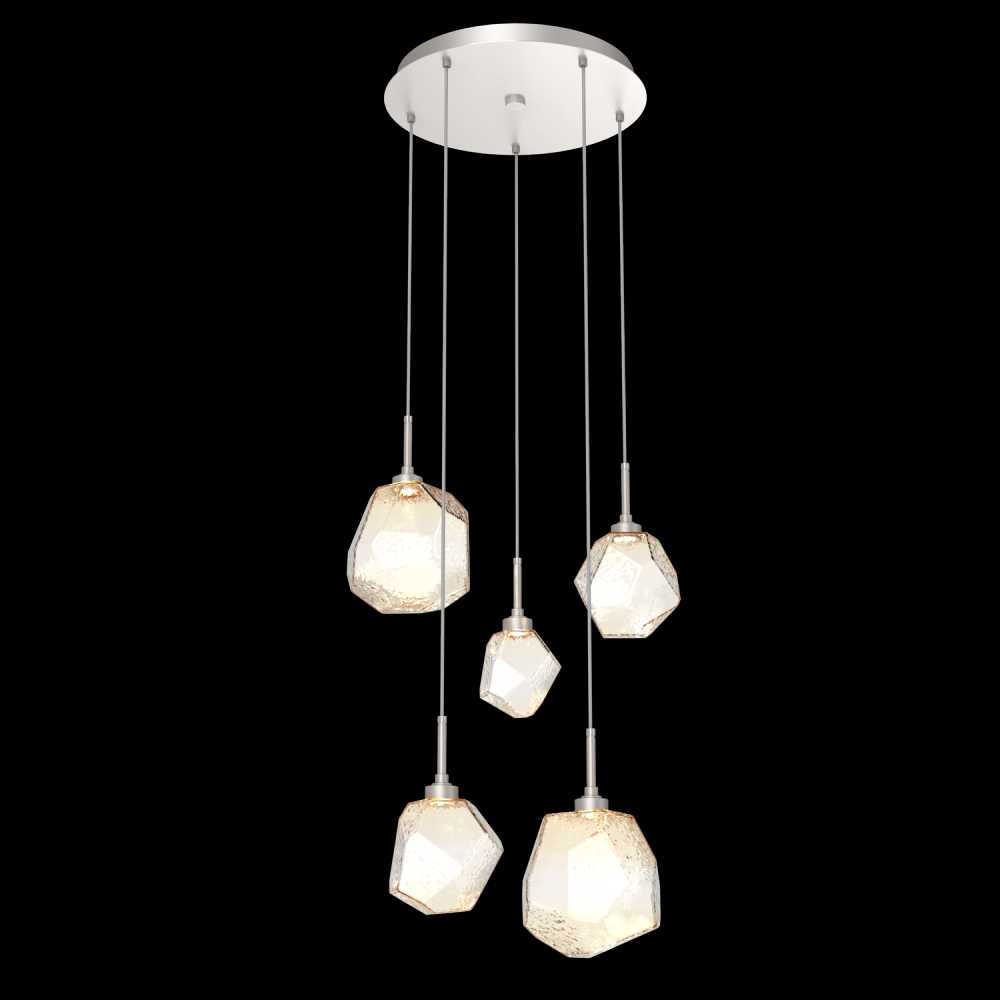 Gem Round Multi - Port - Metallic Beige Silver - Amber Blown Glass - Cloth Braided Cord - LED - 2700K