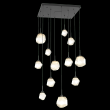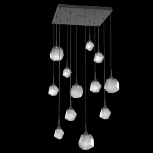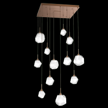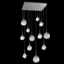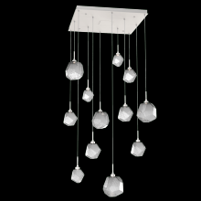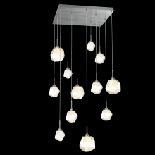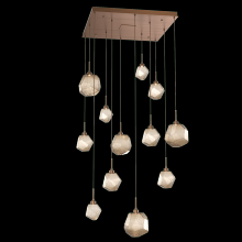 Gem Square Multi - Port - Metallic Beige Silver - Amber Blown Glass - Cloth Braided Cord - LED - 2700K