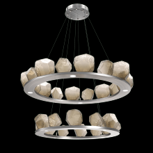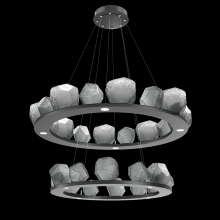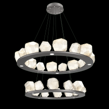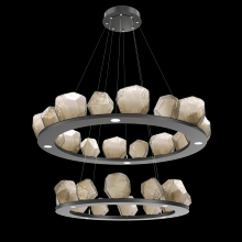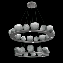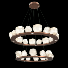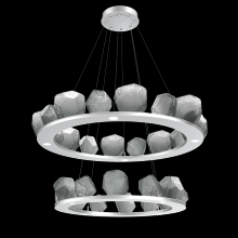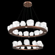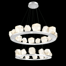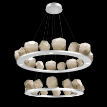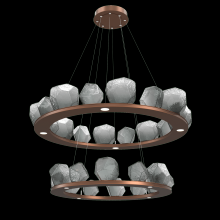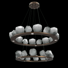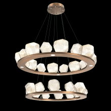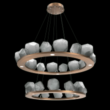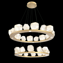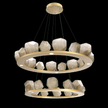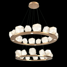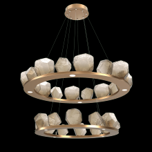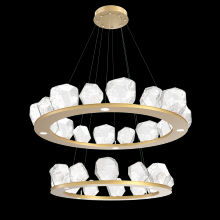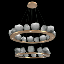 Two Tier Gem Ring Chandelier - 2B - Heritage Brass (Translucent) - Clear Blown Glass - Stainless Cable - LED - 2700K