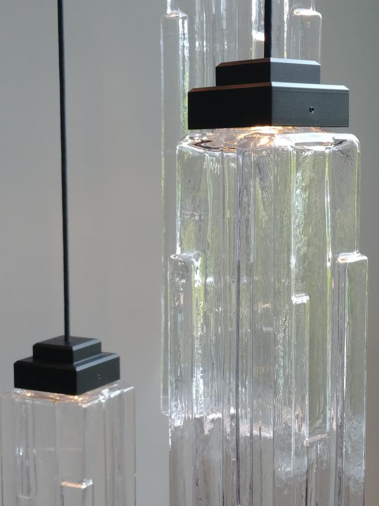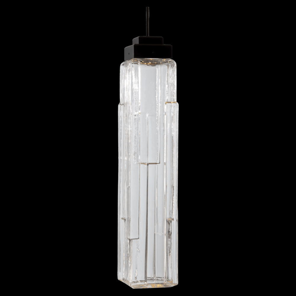 Ledgestone Pendant - Burnished Bronze - Graphite - Ledgestone Blown Glass - Clear - Cloth Braided Cord - LED - 3000K