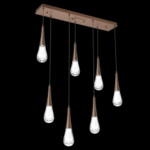 Raindrop Linear 7 PC. - Burnished Bronze - Gilded Brass - Clear Blown Glass - Cloth Braided Cord - LED - 3000K
