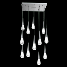 Raindrop Multi - Port 12 PC. - Gilded Brass - Clear Blown Glass - Cloth Braided Cord - LED - 3000K