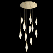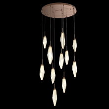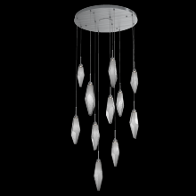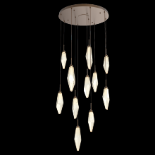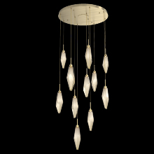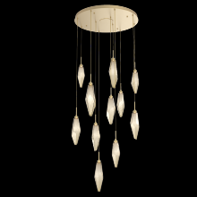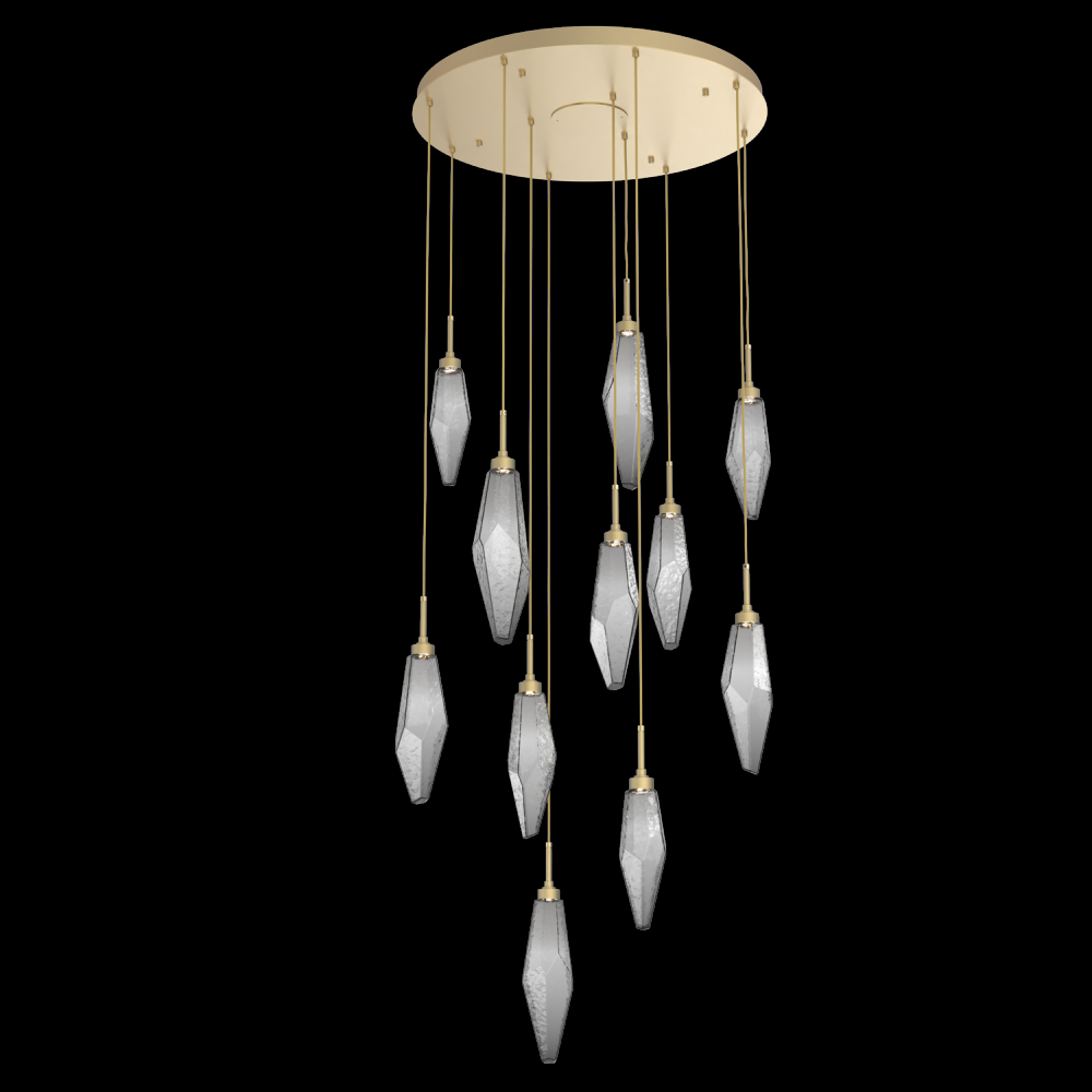 Rock Crystal Round Multi - Port - Gilded Brass - Chilled Blown Glass - Smoke - Cloth Braided Cord - LED - 2700K