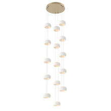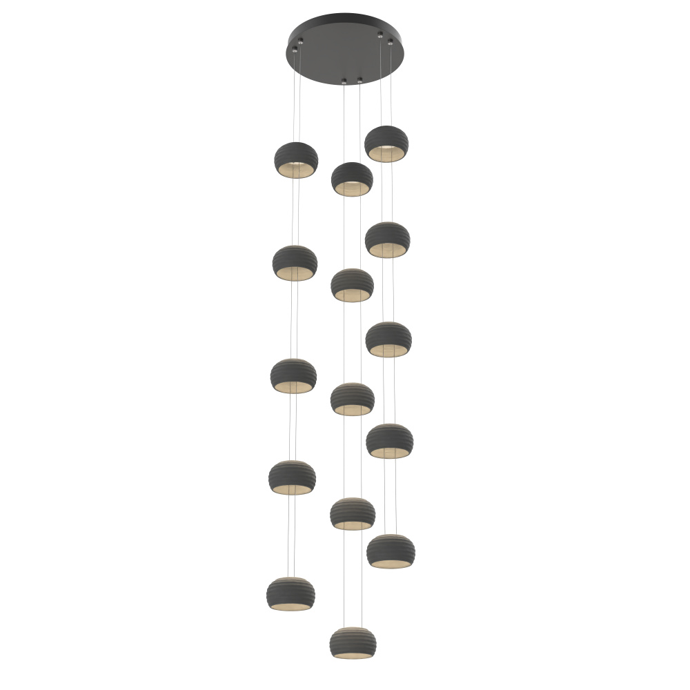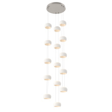 As a stairwell, entry, or living room statement piece, this take on the Torno collection can extend up to 20 feet, with adjustable configurations of 5-, 15-, or 25-ceramic shades that let you tailor each drop for proportion and visual flow. The result is a modern, quietly dramatic installation that transforms vertical space into an architectural moment.