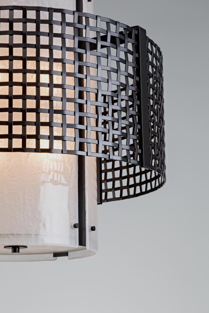 Tweed Double Drum - 24 - Metallic Beige Silver - Frosted Granite - Threaded Rod (24,12 (2x),6,3) - Incandescent E26 Socket