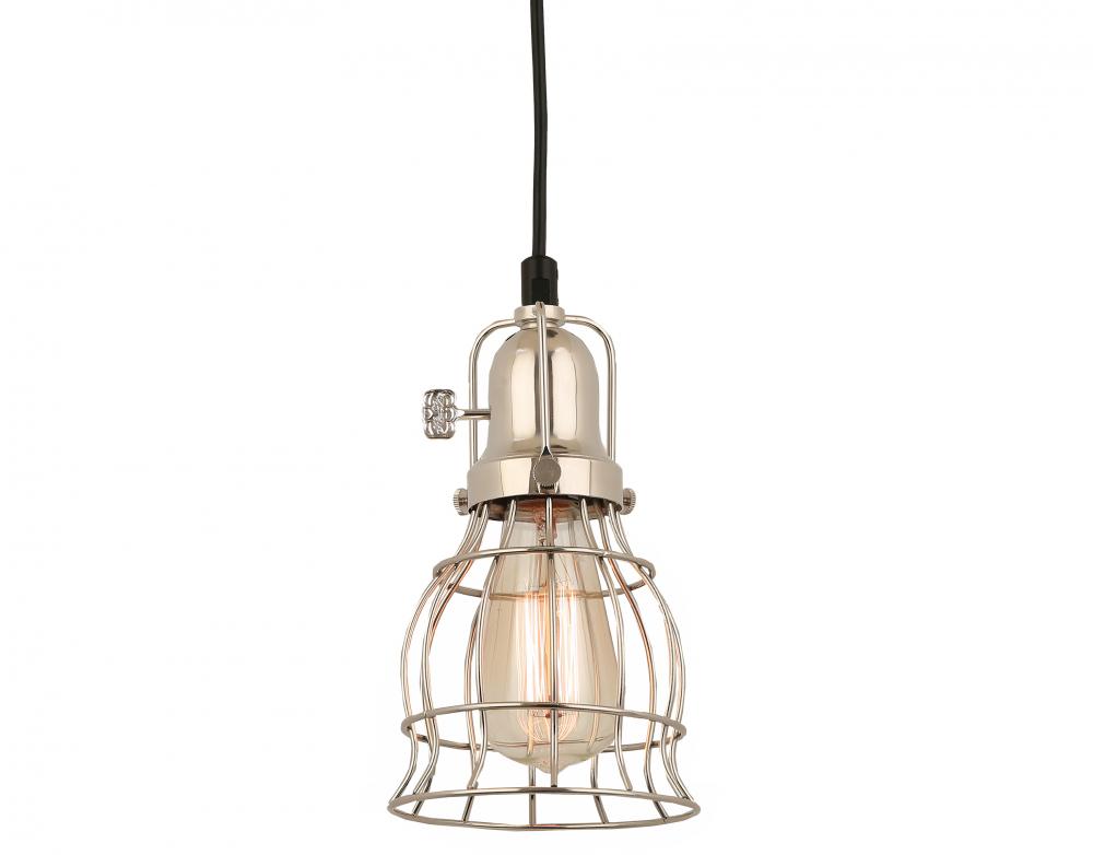 8 ft Black Cord Hung Pendant, Polished Nickel Finish