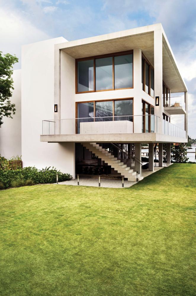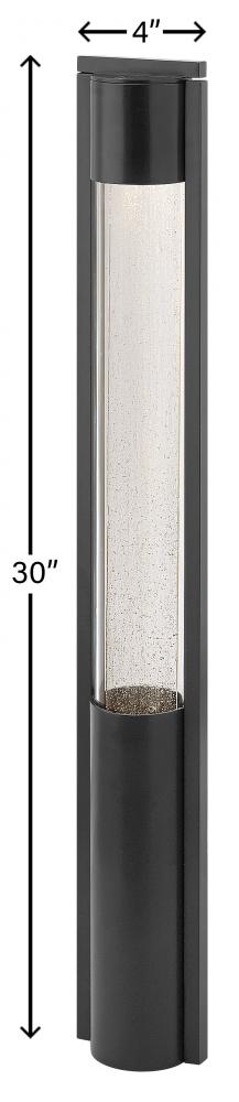 Shelter’s minimalist style in aluminum creates a chic, dramatic statement as the light from above grazes through its clear seedy glass. Shelter comes standard Dark Sky compliant.