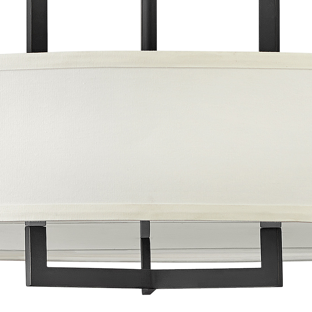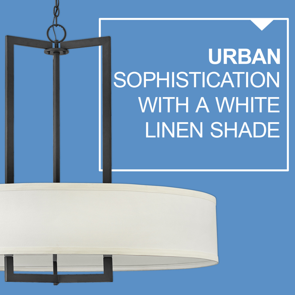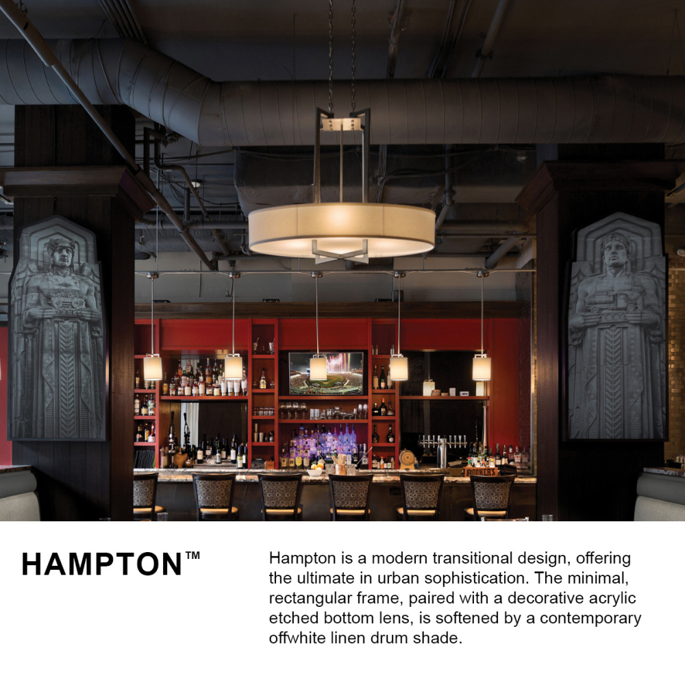 Hampton is a modern transitional design, offering the ultimate in urban sophistication. The minimal, rectangular frame is softened by a contemporary off-white linen drum shade.