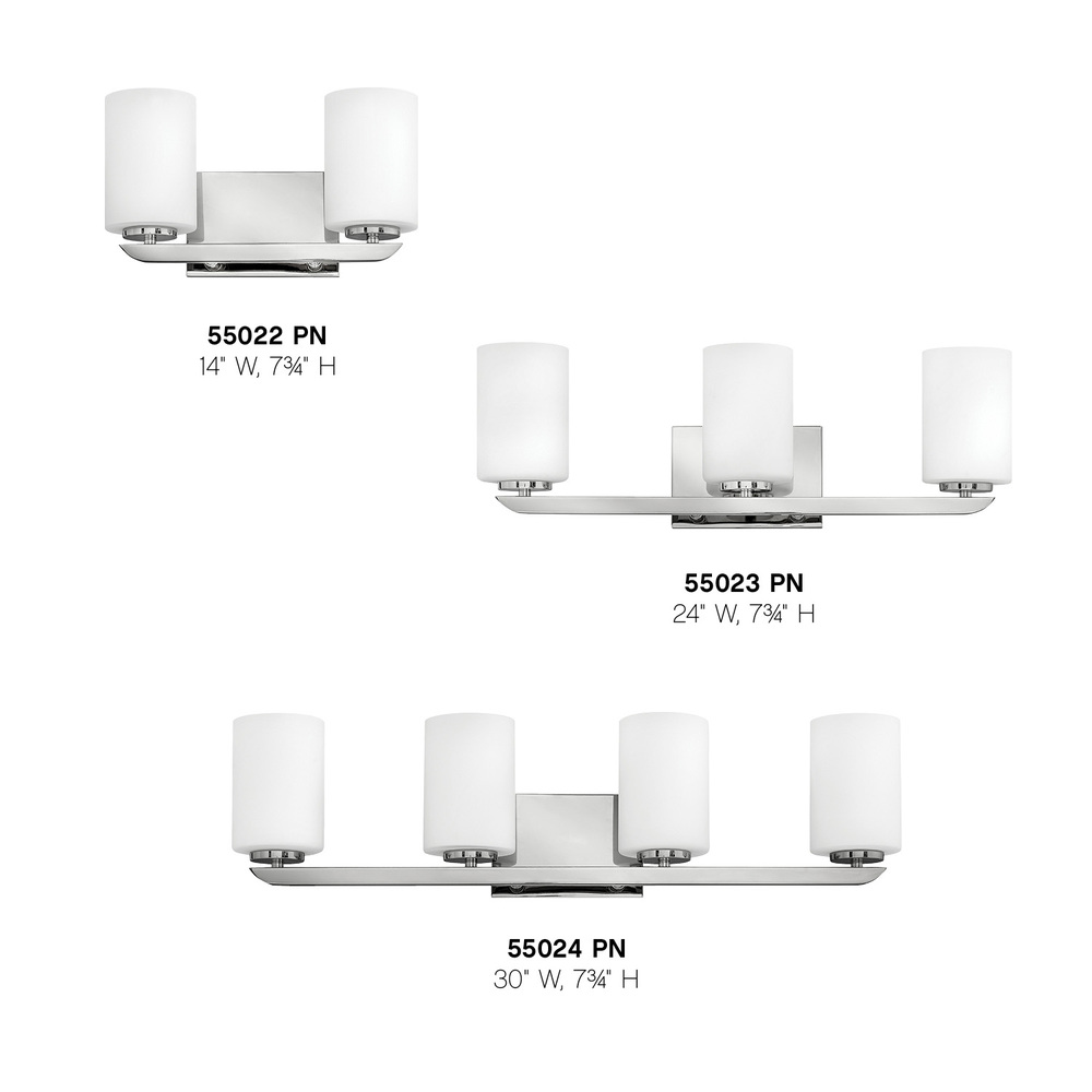 Clean and crisp, Kyra's minimalist design is anchored with a bold yet simple aesthetic. The sleek cross bar ends with a subtle curve for an element of softness. Rich finish options of Brushed Nickel or Polished Nickel complement the elegant etched opal glass.