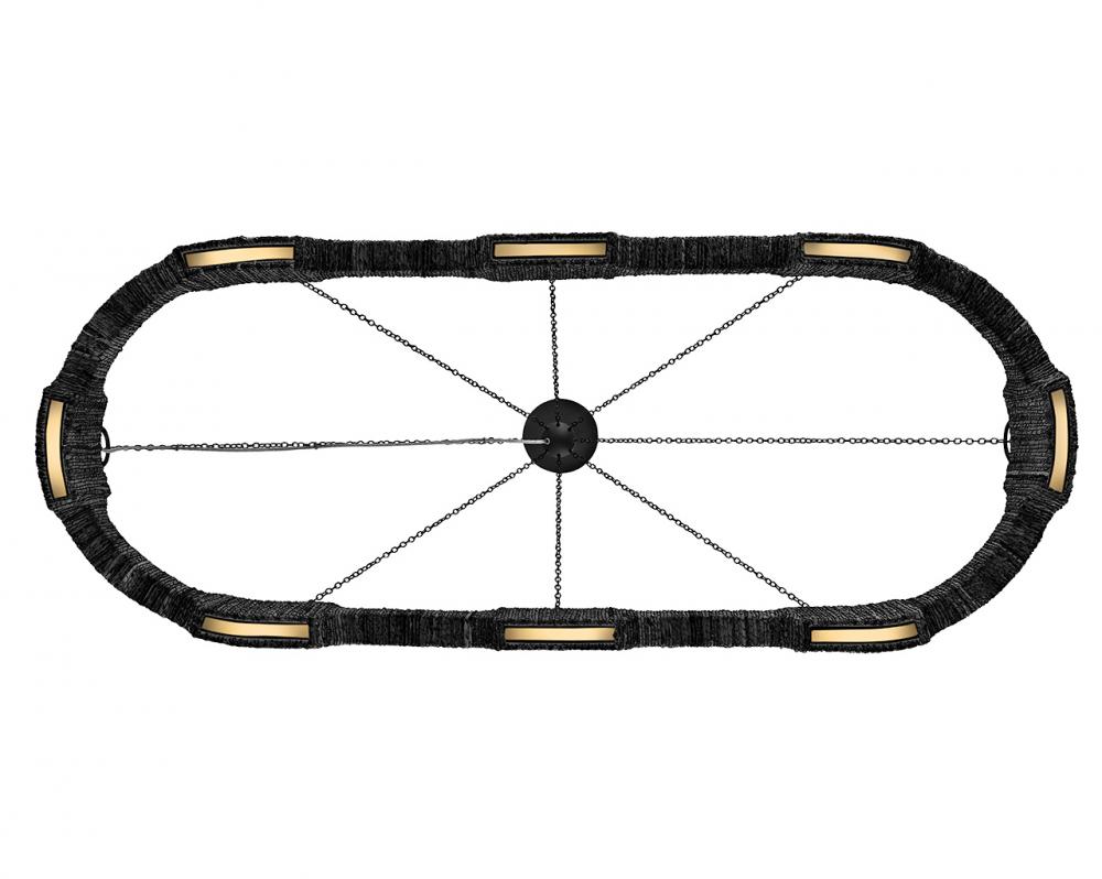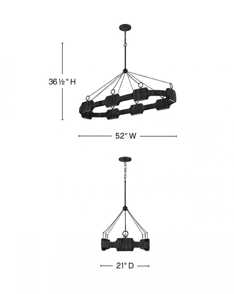 Raffi's coastal bohemian vibe is balanced by its distinctively modern shape. A unique LED design offers abundant light, while a slim frame hand-wrapped in natural reeds provides unexpected texture. Bold Carbon Black or Burnished Gold finishes perfectly complement any color palette.