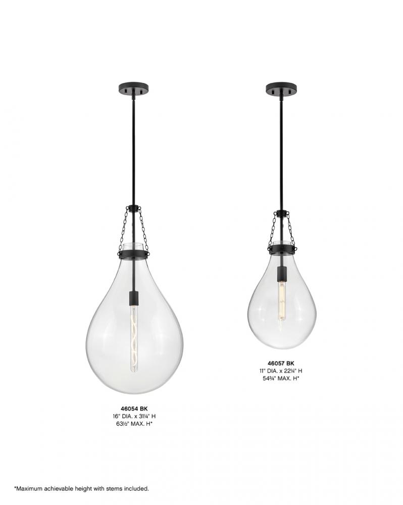 Eloise is bold and balanced with a compelling silhouette that is the definition of “statement-making.” The sizable raindrop-shaped glass is further enhanced by the delicate chain detailing to finish off a truly eye-catching fixture. Finding harmony in intricate simplicity, Eloise adds to any transitional, modern, or traditional space.