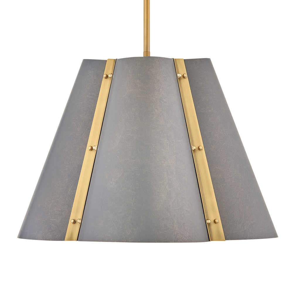 Strong in style and design, Bowman’s makes a transitional statement with a tapered quatrefoil shade accented by decorative knobs along symmetrical vertical supports. Heritage Brass or Slate Bronze finishes complement any living or dining decor with polished metallic tones.