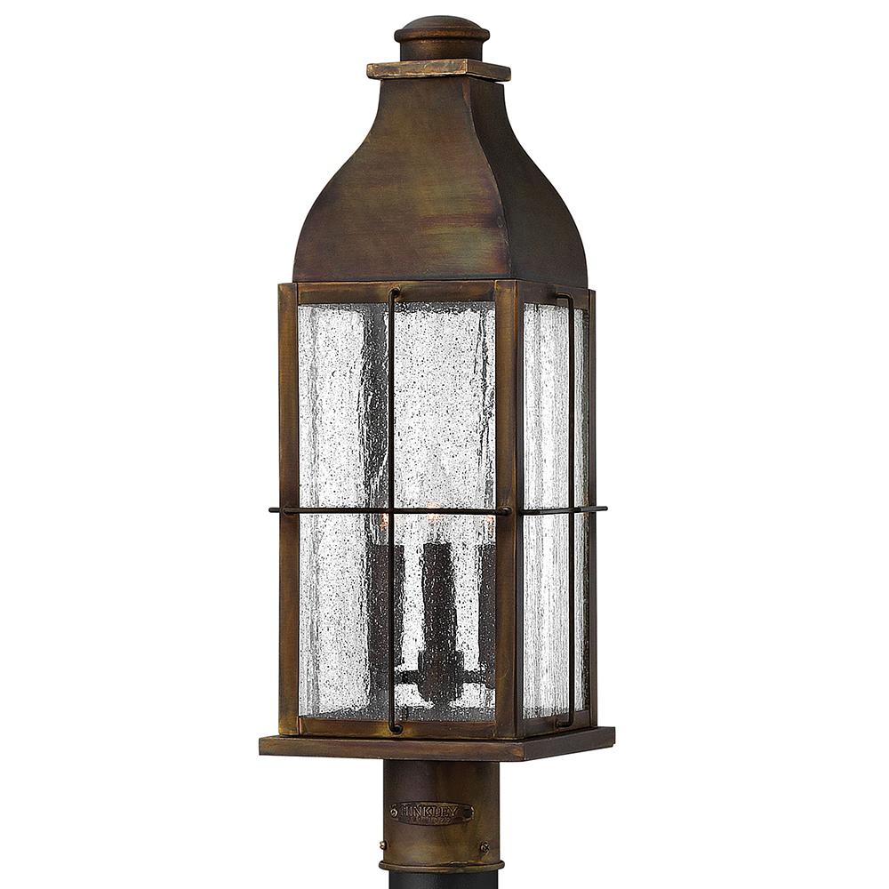 Bingham’s traditional style recalls a turn-of-the-century gas light reproduction. The vintage look is nautical in nature and recognizes Hinkley’s origins on the shores of Lake Erie. The aluminum construction features clear seedy glass and a Greystone or Sienna finish, while candelabra bulbing completes the authentic style.