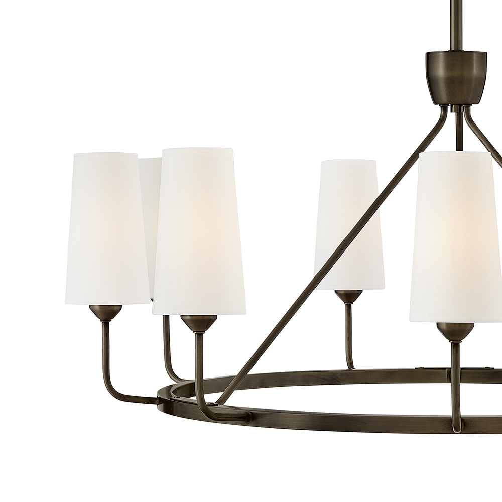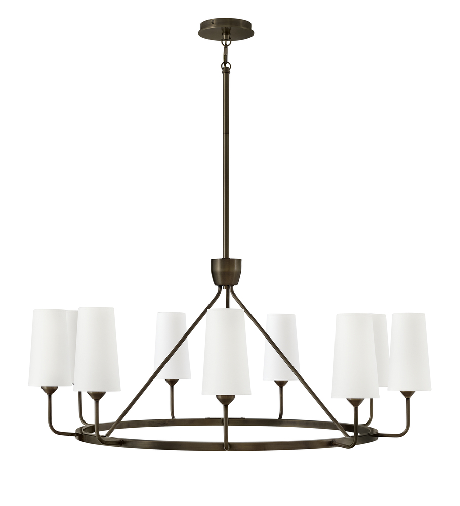 Lewis offers traditional charm paired with updated, transitional elements. Tall natural paper shades feature fine stitching detail against a Heritage Brass or Black Oxide finish to enhance timeless interiors.