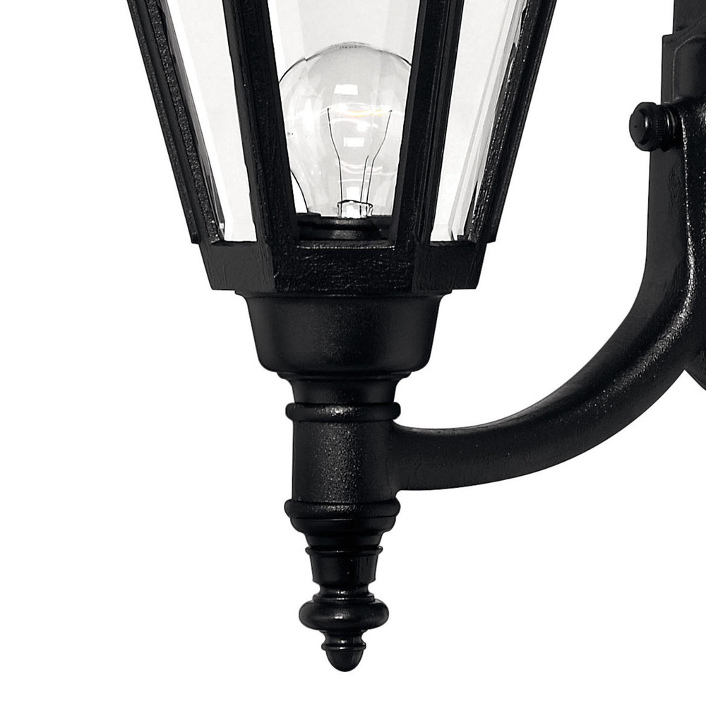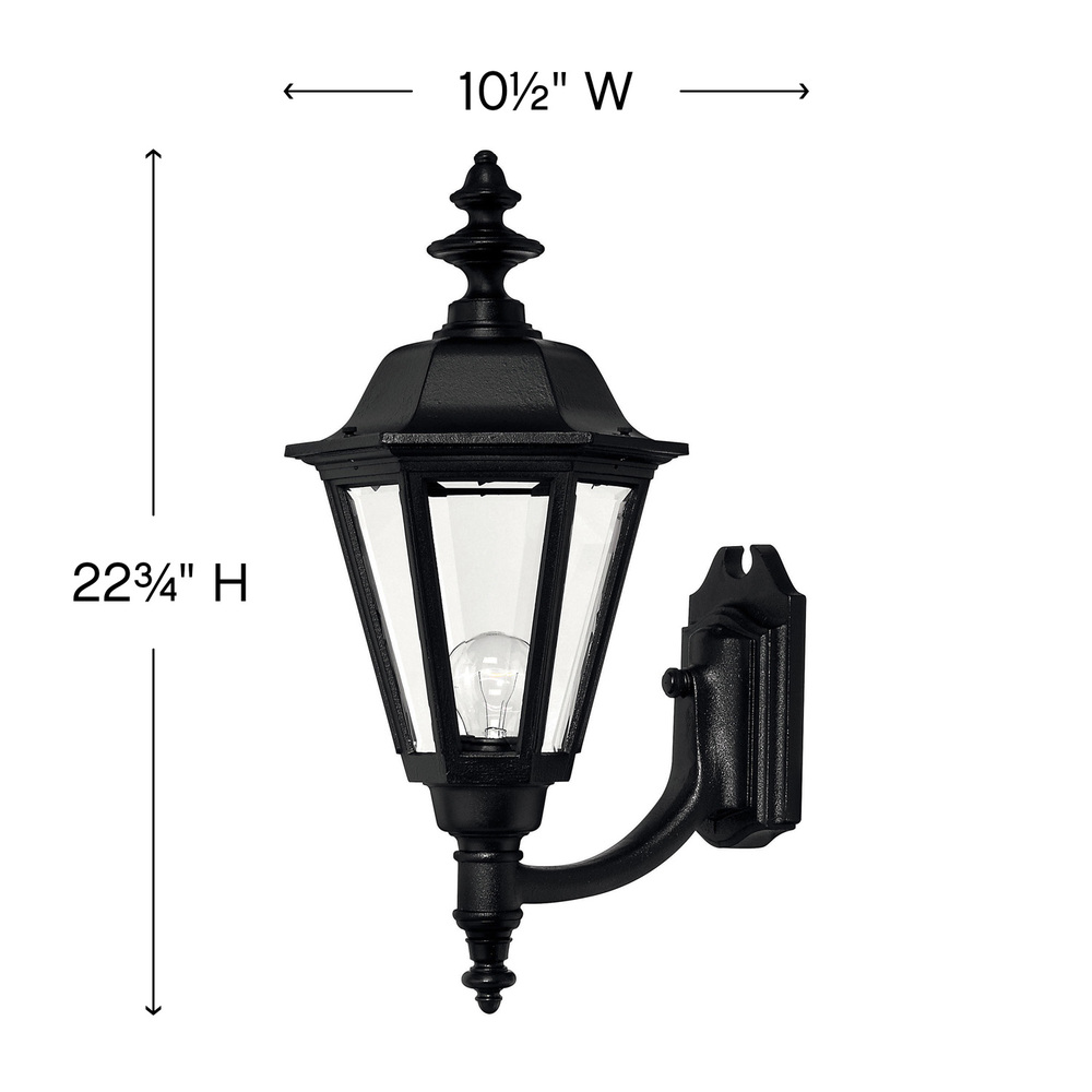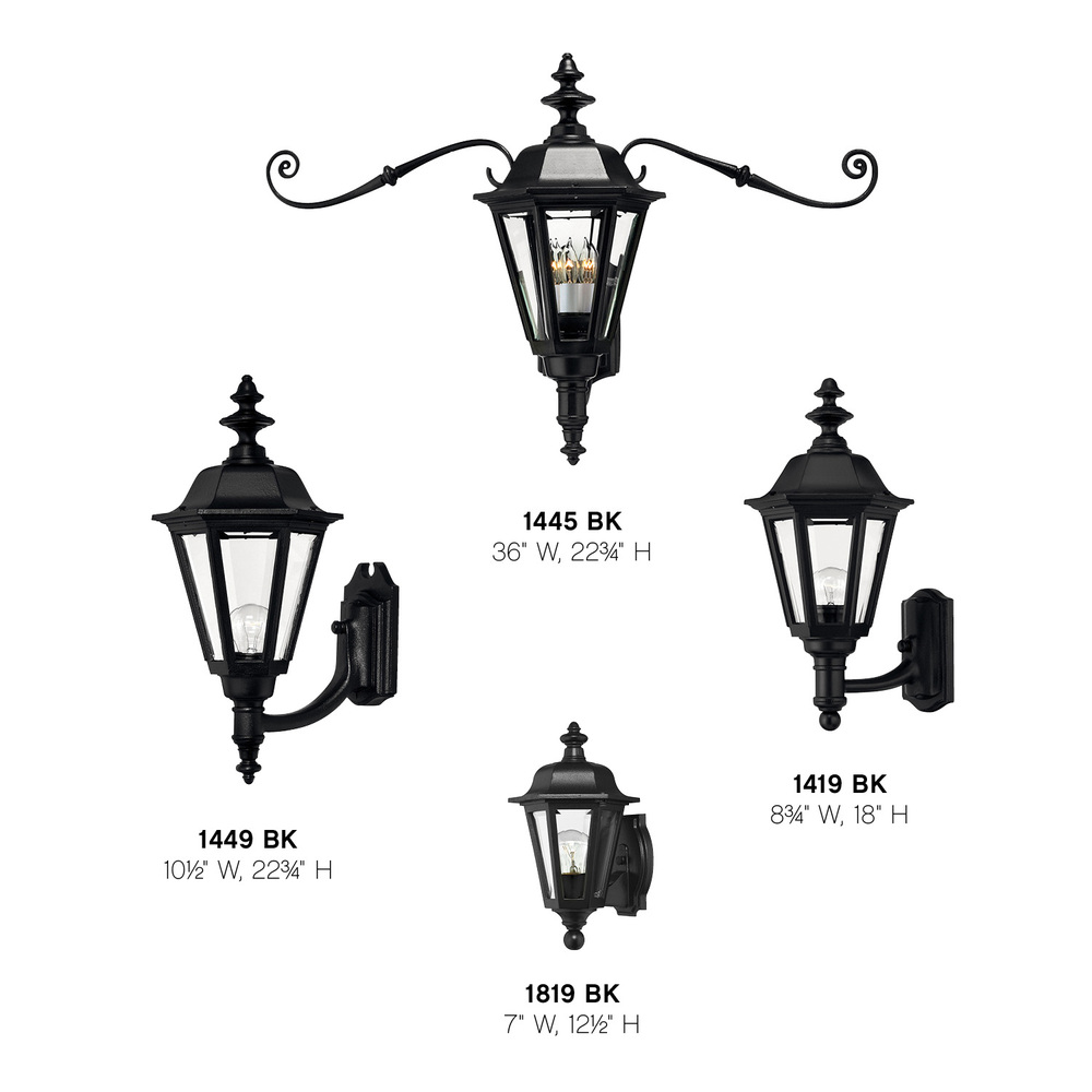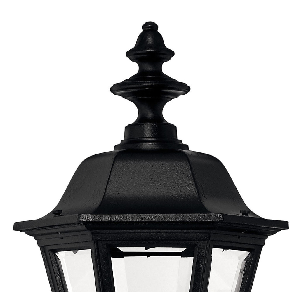 Manor House is a classic lantern design featuring durable cast aluminum, clear beveled glass panels and a bold Black finish. Select-A-Lite options come standard with both candelabra and medium based sockets.