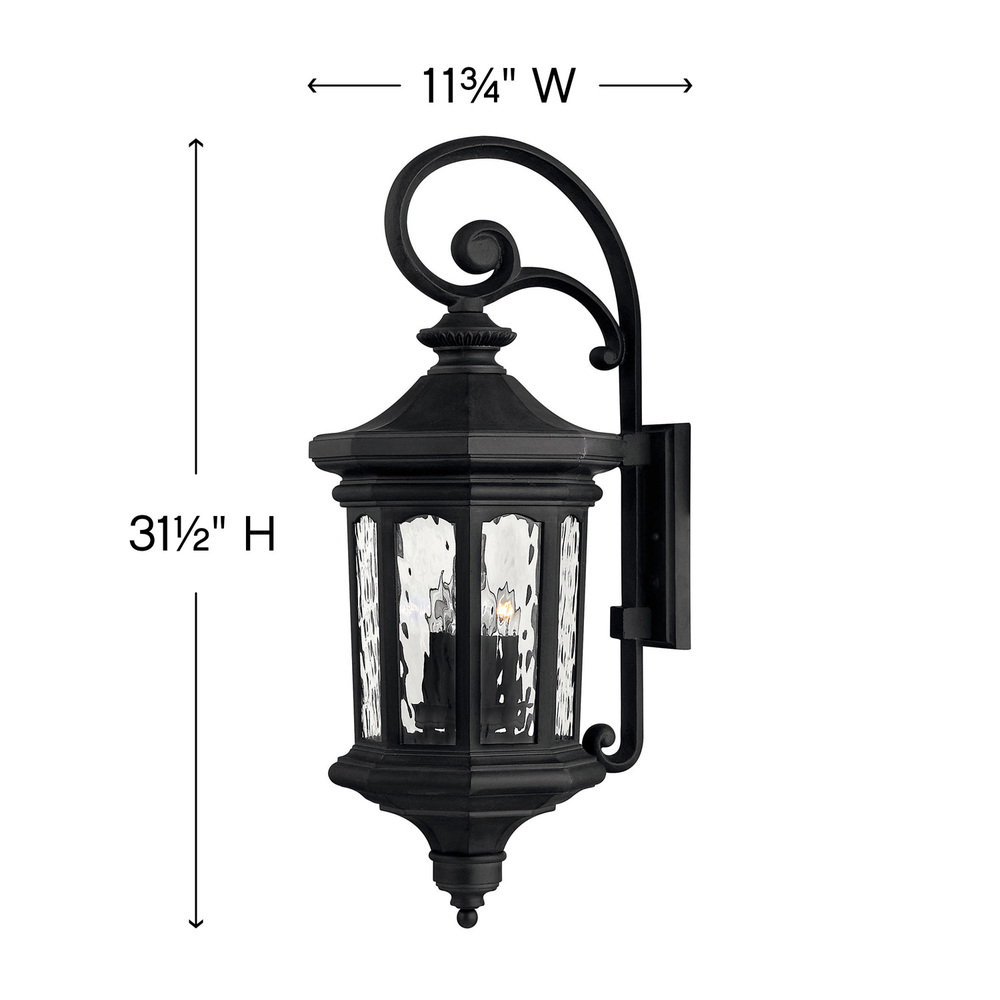 Raley’s regal appearance features a cast aluminum construction, flourishing details, and glass panels for a dignified style statement.