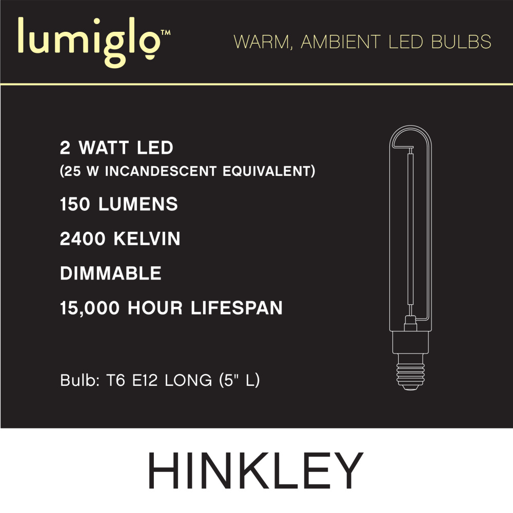 To create superior, softer light that sets the scene in any indoor or outdoor setting, Hinkley’s Lumiglo™ LED bulbs feature unique filament technology designed to cast a warm ambient glow. Dimmable functionality provides full control over brightness, allowing you to craft an atmosphere that perfectly accentuates your space.
