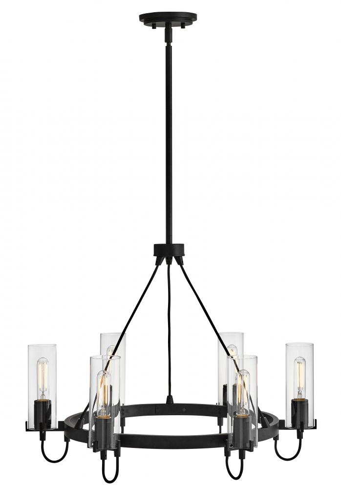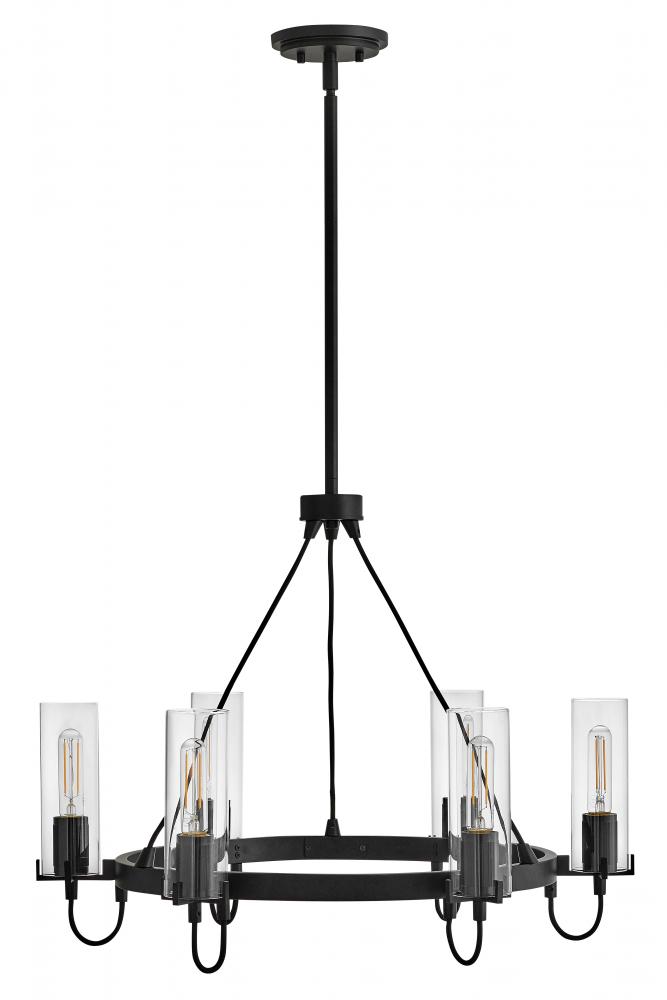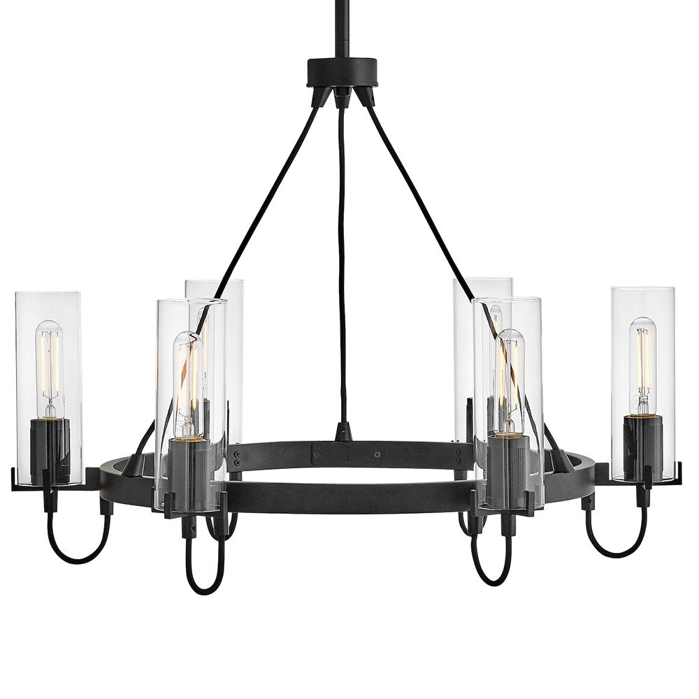 A versatile stunner, Ryden‘s chic, modern-industrial silhouette is practical yet stylish, featuring elongated glass shades held by heavy cast prongs. Classic finishes are complemented by black, fabric-wrapped cord and subtle detailing.